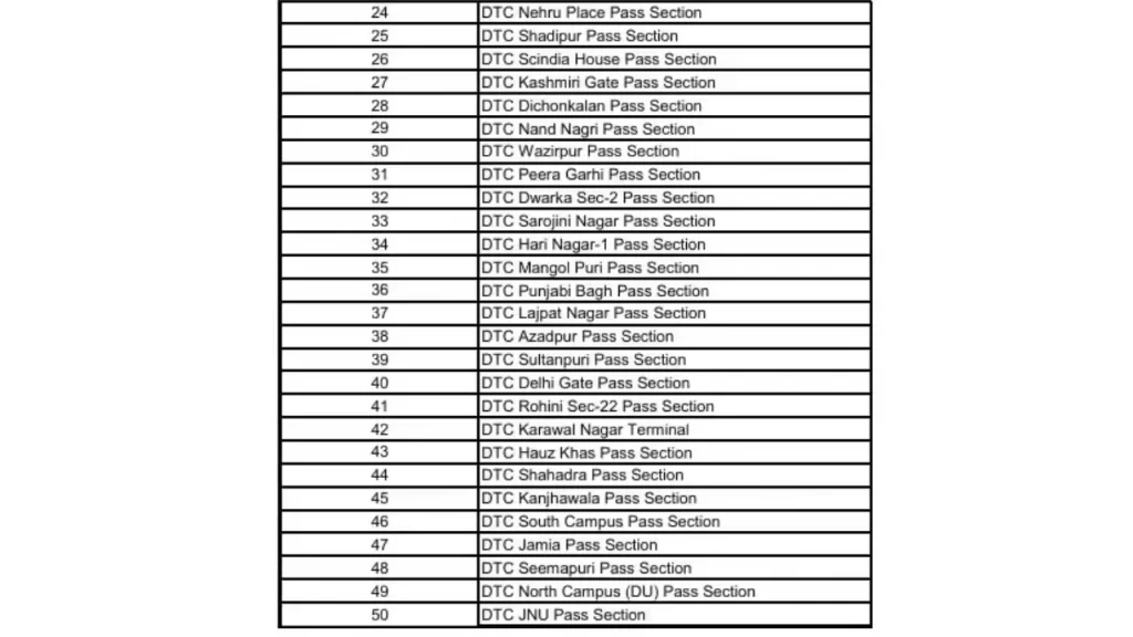 - Select Delhi Transport Corporation (DTC) depots